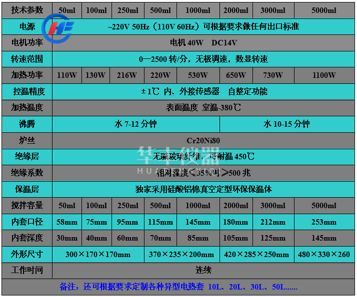 1.采用電熱套加熱,具有受熱面積大、均勻、升溫快的特點(diǎn),溫度380℃。 2.可對(duì)50-10000ml標(biāo)準(zhǔn)或非標(biāo)準(zhǔn)反應(yīng)瓶進(jìn)行加熱攪拌。 3.采用德國(guó)PAPST系列直流無(wú)刷電機(jī),性能穩(wěn)定,噪音小,壽命長(zhǎng),無(wú)火花產(chǎn)生。